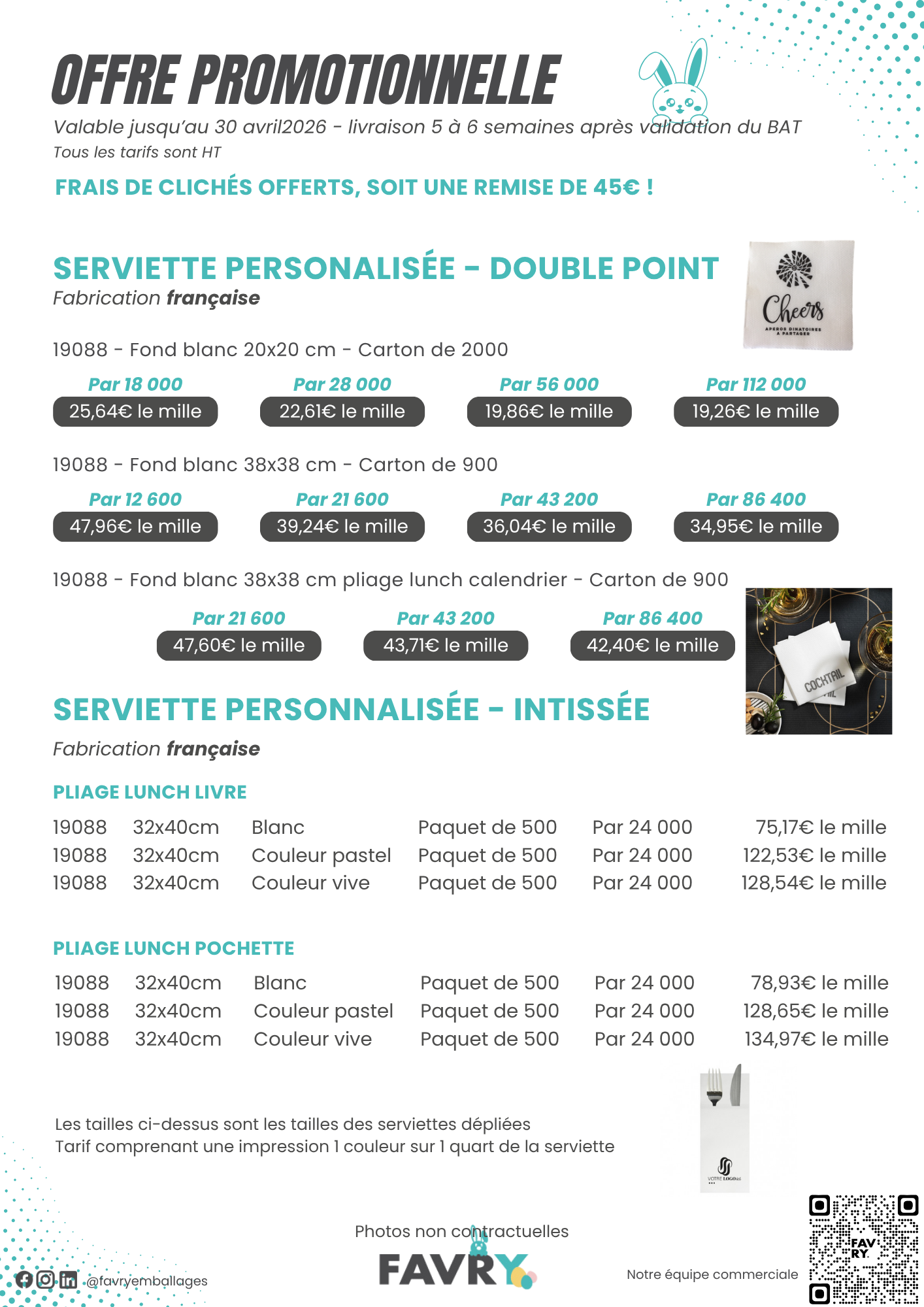 Serviettes 40x40cm